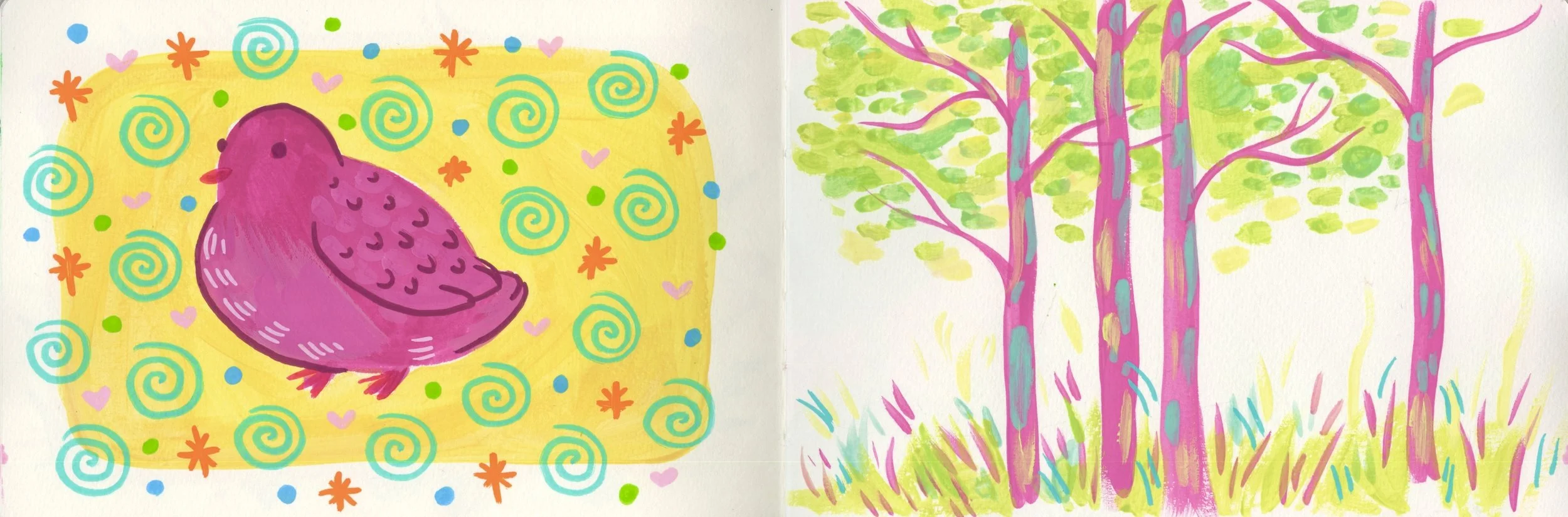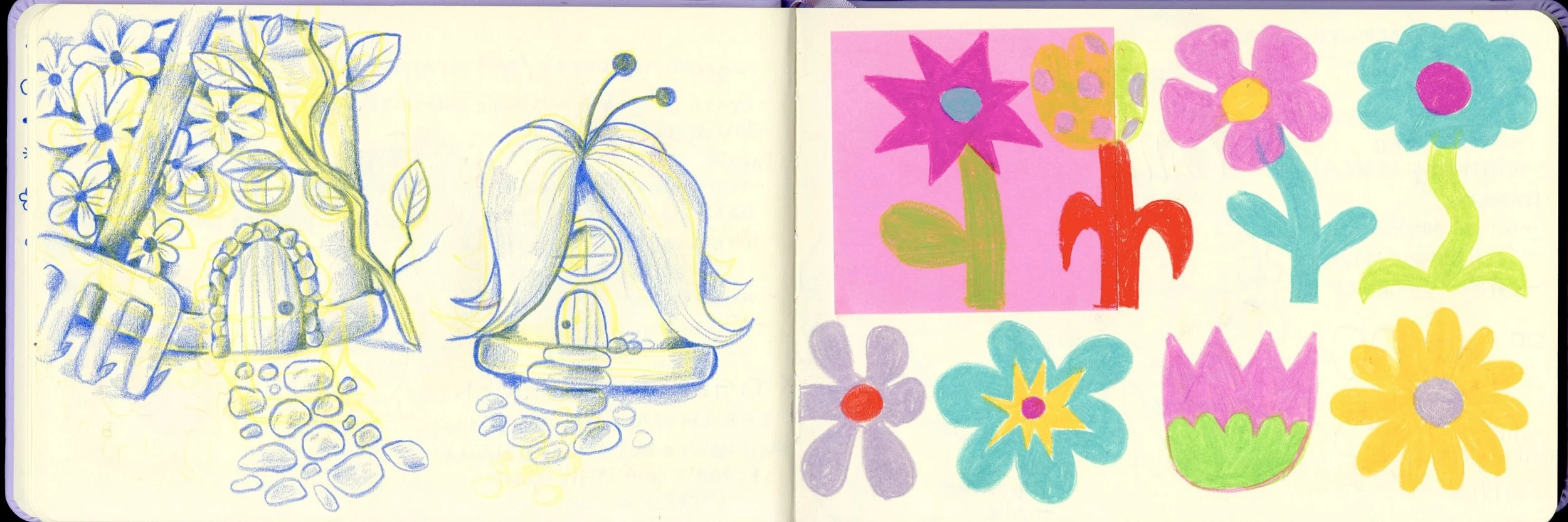 cute illustration, cute sketchbook drawing, cute sketchbook illustration, colorful sketchbook illustration, children's book sketchbook
